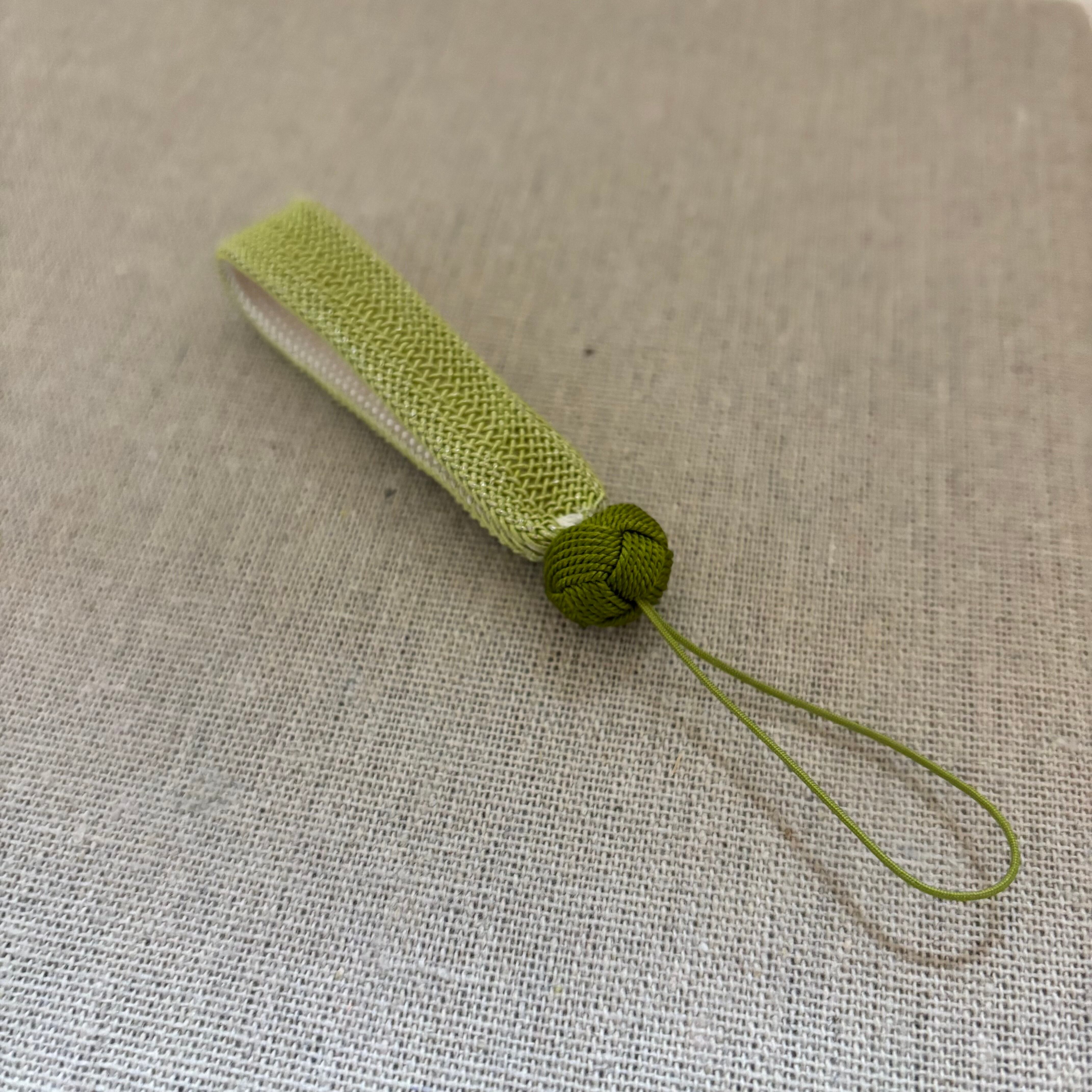 帯締めと同じ工程で高台によって組み上げられたくみひものストラップです。
